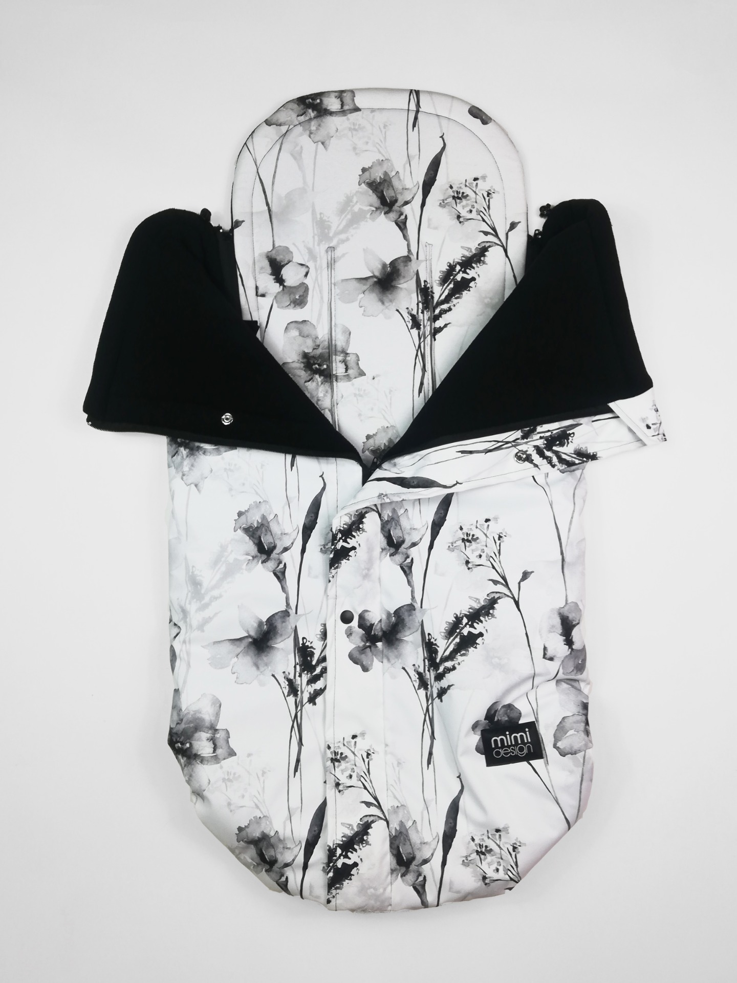 Celoroční nepadací deka se zipem uprostřed - Černé květy XL