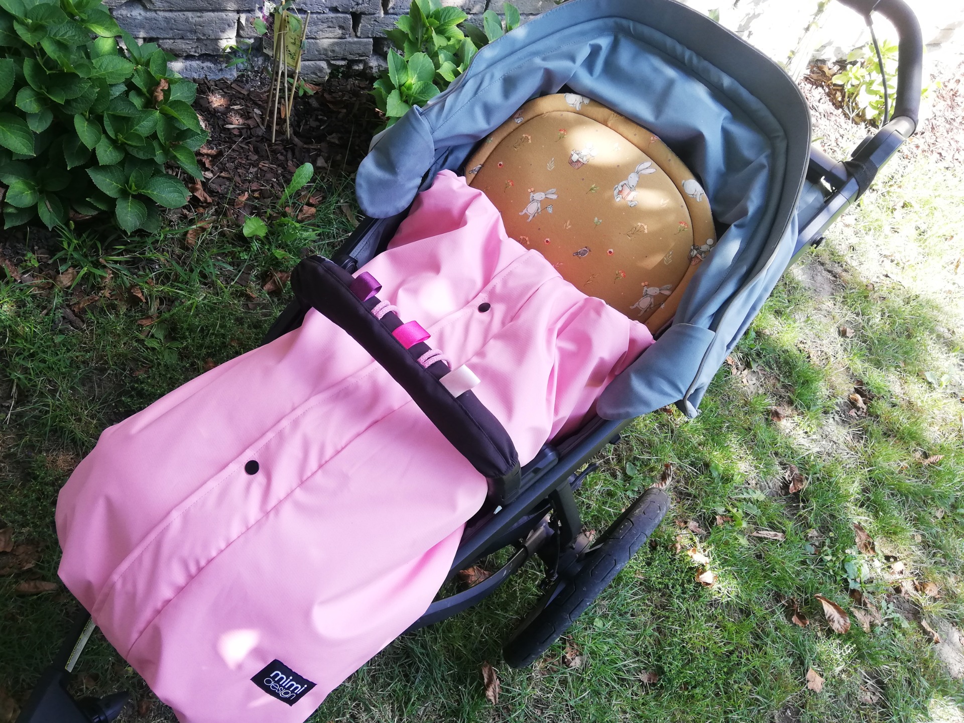 Deka má také v horní části všité gumičky s brzdičkou. Jejich utažením tak deku nahoře zmenšíte a děťátko tak můžete více zachumlat pokud zrovna fouká, prší nebo je větší zima.