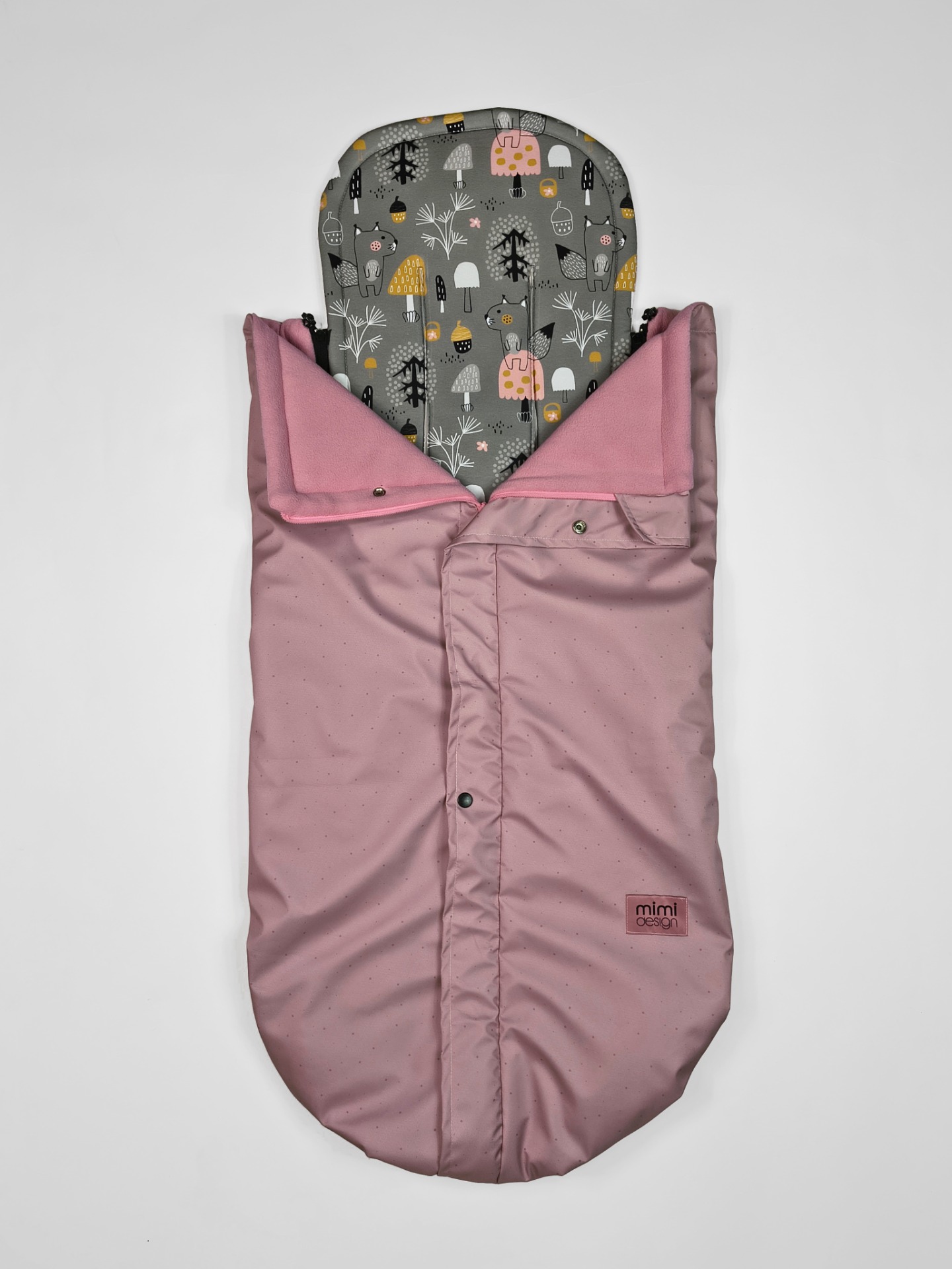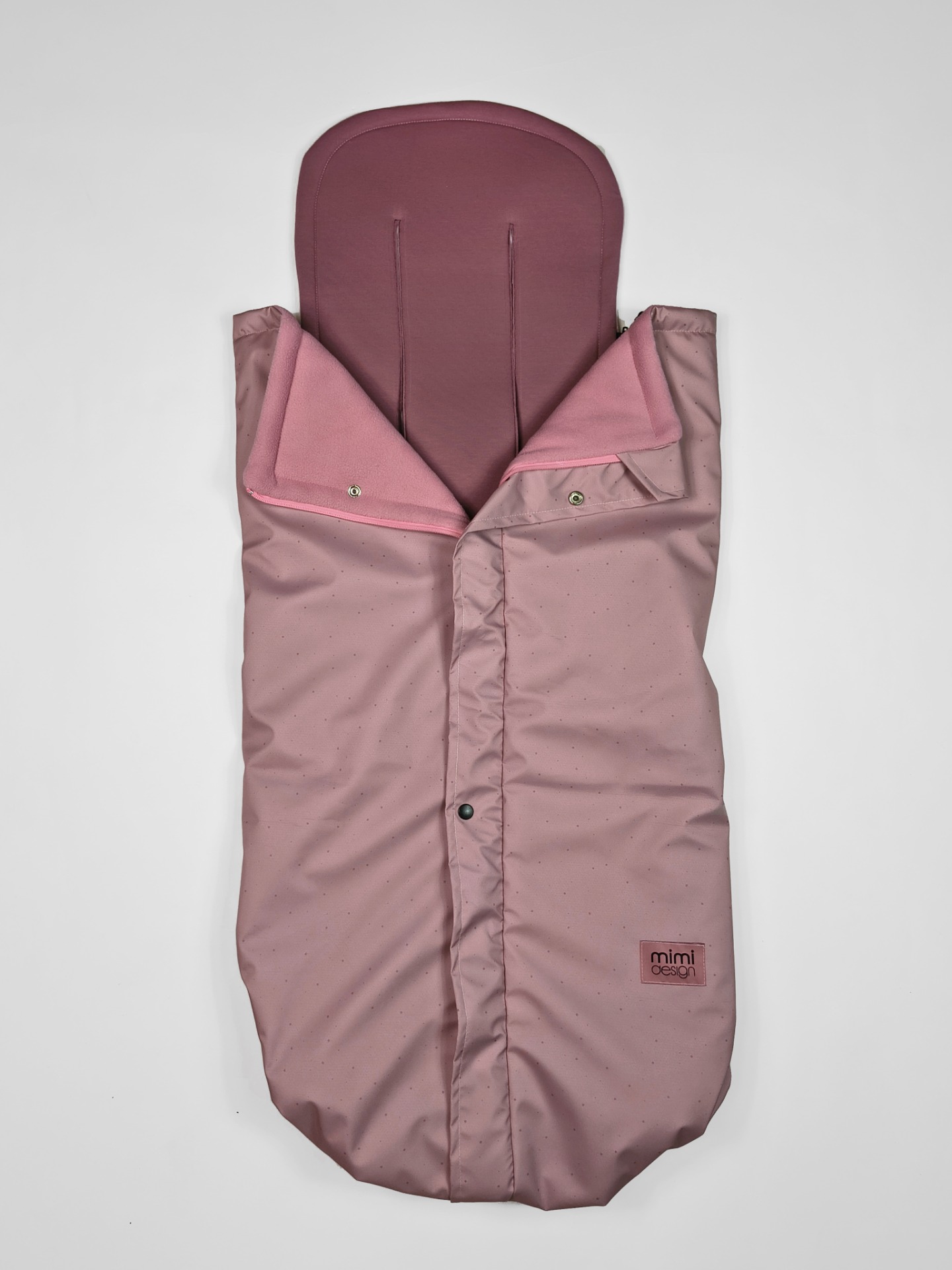 V horní části deky jsou na každé straně také všité dvě gumičky, které můžete snadno připnout ke konstrukci kočárku pomocí druku. Deku tak lze použít i bez podložky se zipy na bocích.