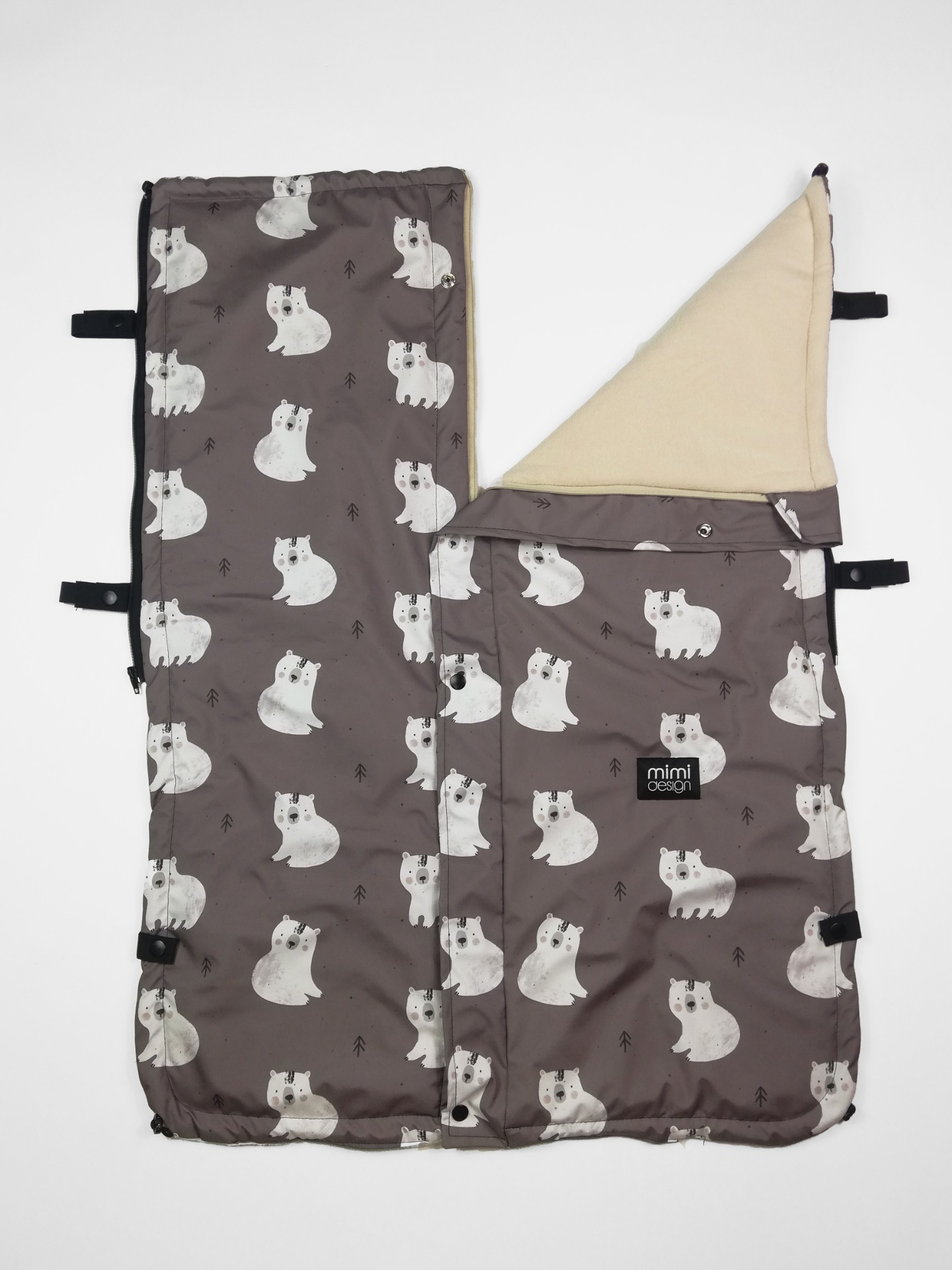 Deka má také v horní části všité gumičky s brzdičkou. Jejich utažením tak deku nahoře zmenšíte a děťátko tak můžete více zachumlat pokud zrovna fouká, prší nebo je větší zima.