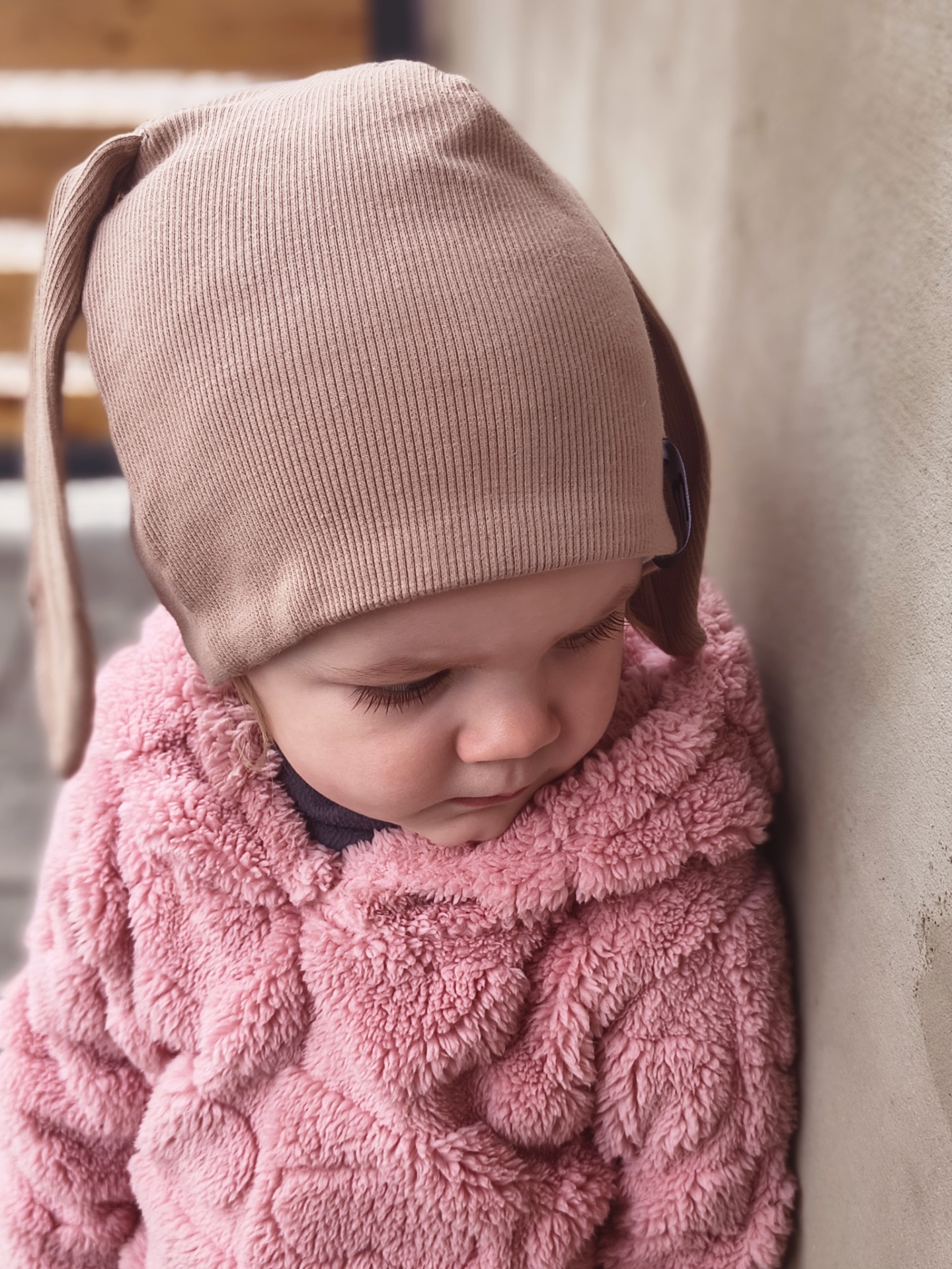 Čepička má na sobě všitá ouška evokující králíčka, je to opravdu velmi roztomilý prvek. Díky ouškům ji také bude děťátko rádo nosit.