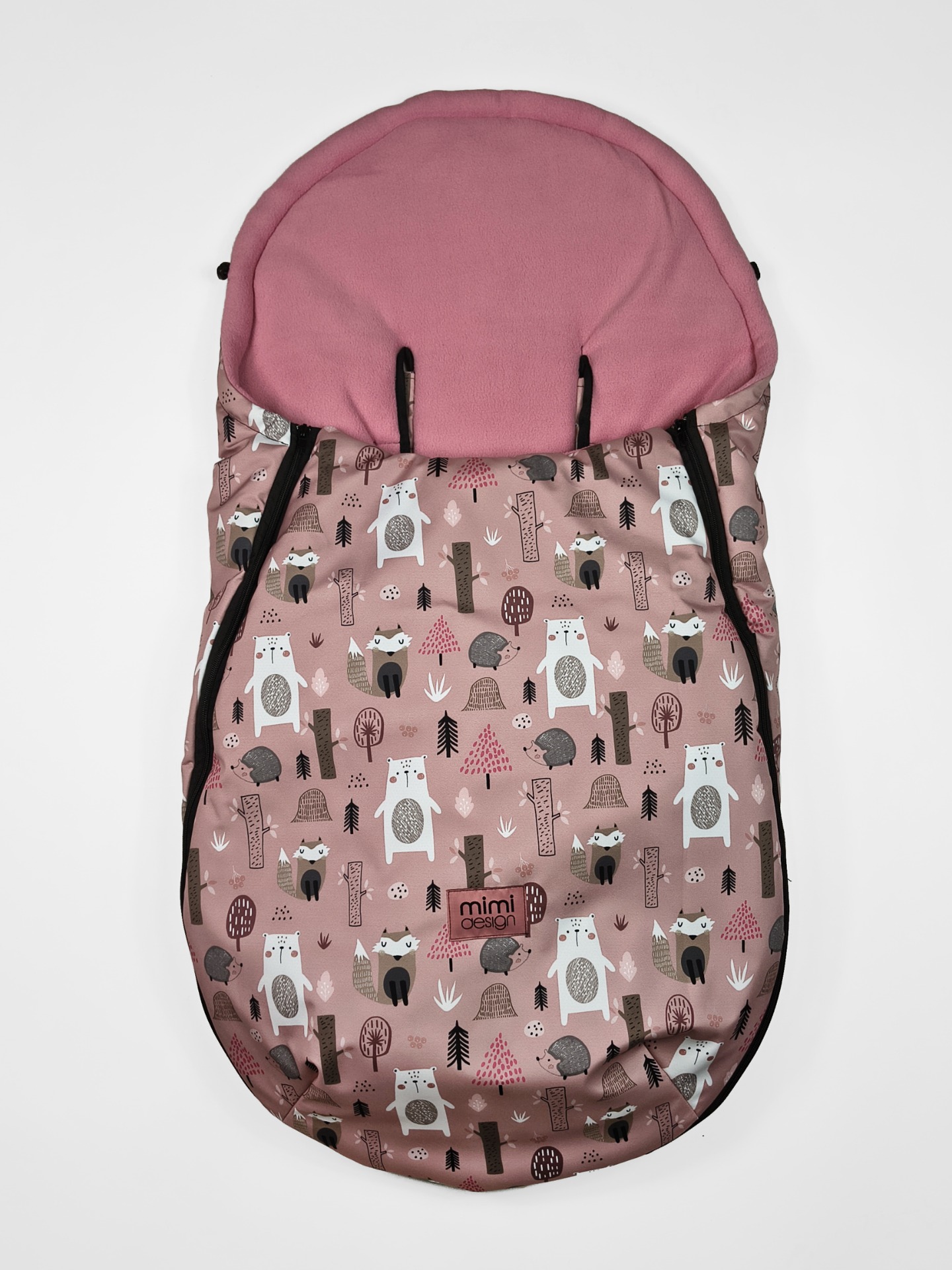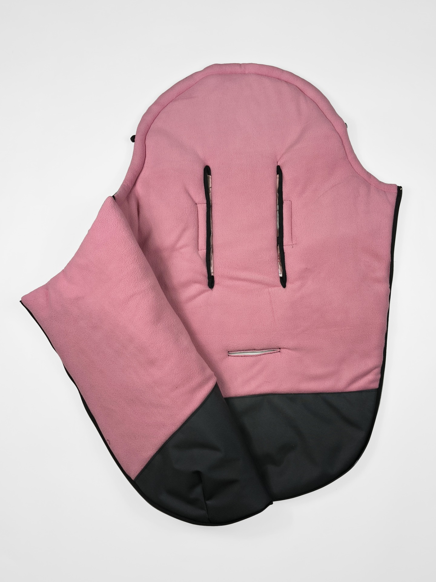 Otvory pro bezpečnostní pásy mají universální zpracování. Díky tomu je možné fusak uchytit bez nutnosti rozdělávání bezpečnostních pásů, je tak vhodný pro použití do všech kočárků s 3 i 5-ti bodovými bezpečnostními pásy.