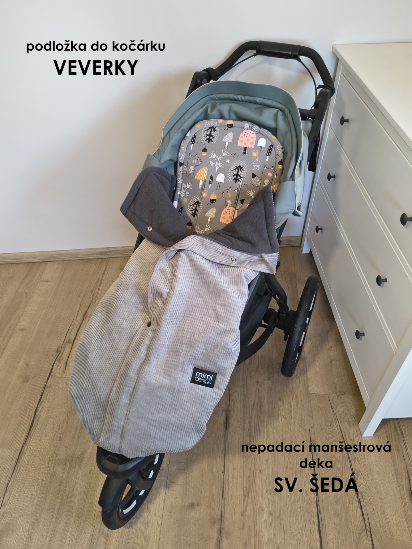 Deka má také v horní části všité gumičky s brzdičkou. Jejich utažením tak deku nahoře zmenšíte a děťátko tak můžete více zachumlat pokud zrovna fouká, prší nebo je větší zima.
