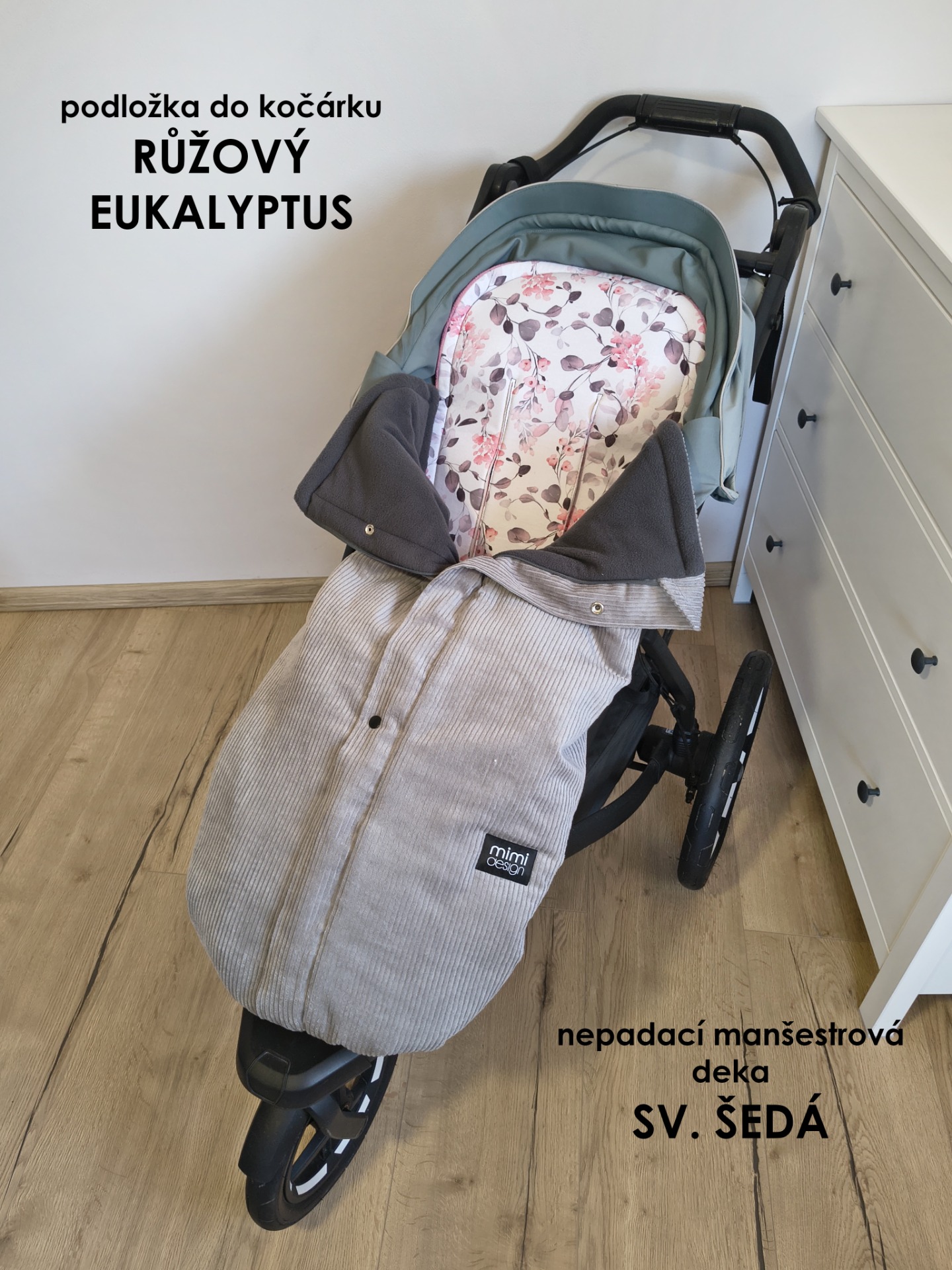 V horní části deky jsou na každé straně také všité dvě gumičky, které můžete snadno připnout ke konstrukci kočárku pomocí druku. Deku tak lze použít i bez podložky se zipy na bocích.