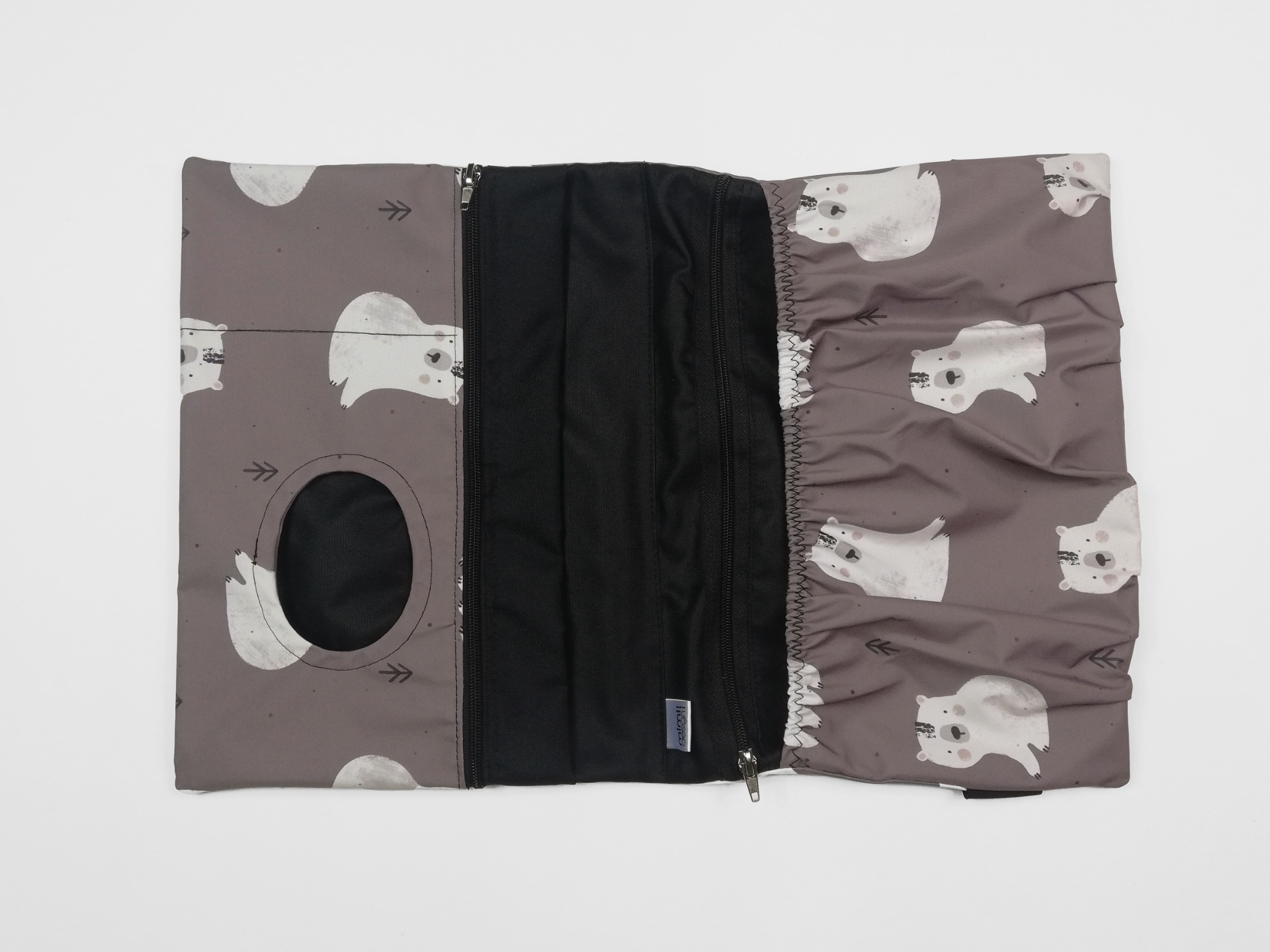Je zhotovený z kvalitního softshellu. Vnitřek plenkovníku je z kočárkoviny. Díky těmto dvěma materiálům jde plenkovník snadno otřít vlhkým hadříkem.