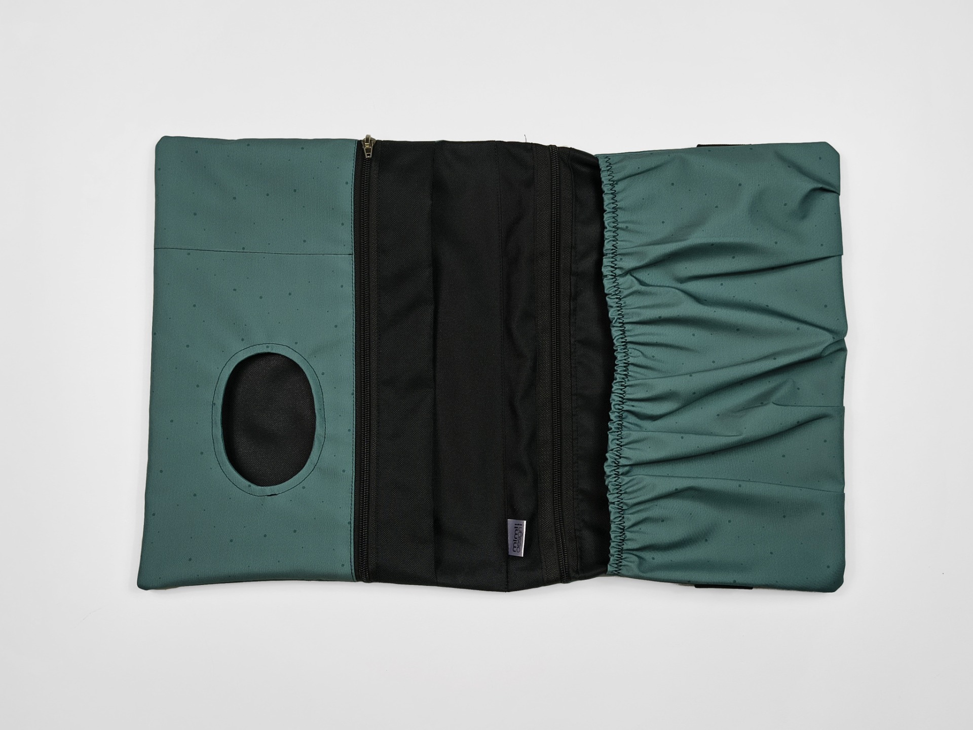 Je zhotovený z kvalitního softshellu. Vnitřek plenkovníku je z kočárkoviny. Díky těmto dvěma materiálům jde plenkovník snadno otřít vlhkým hadříkem.