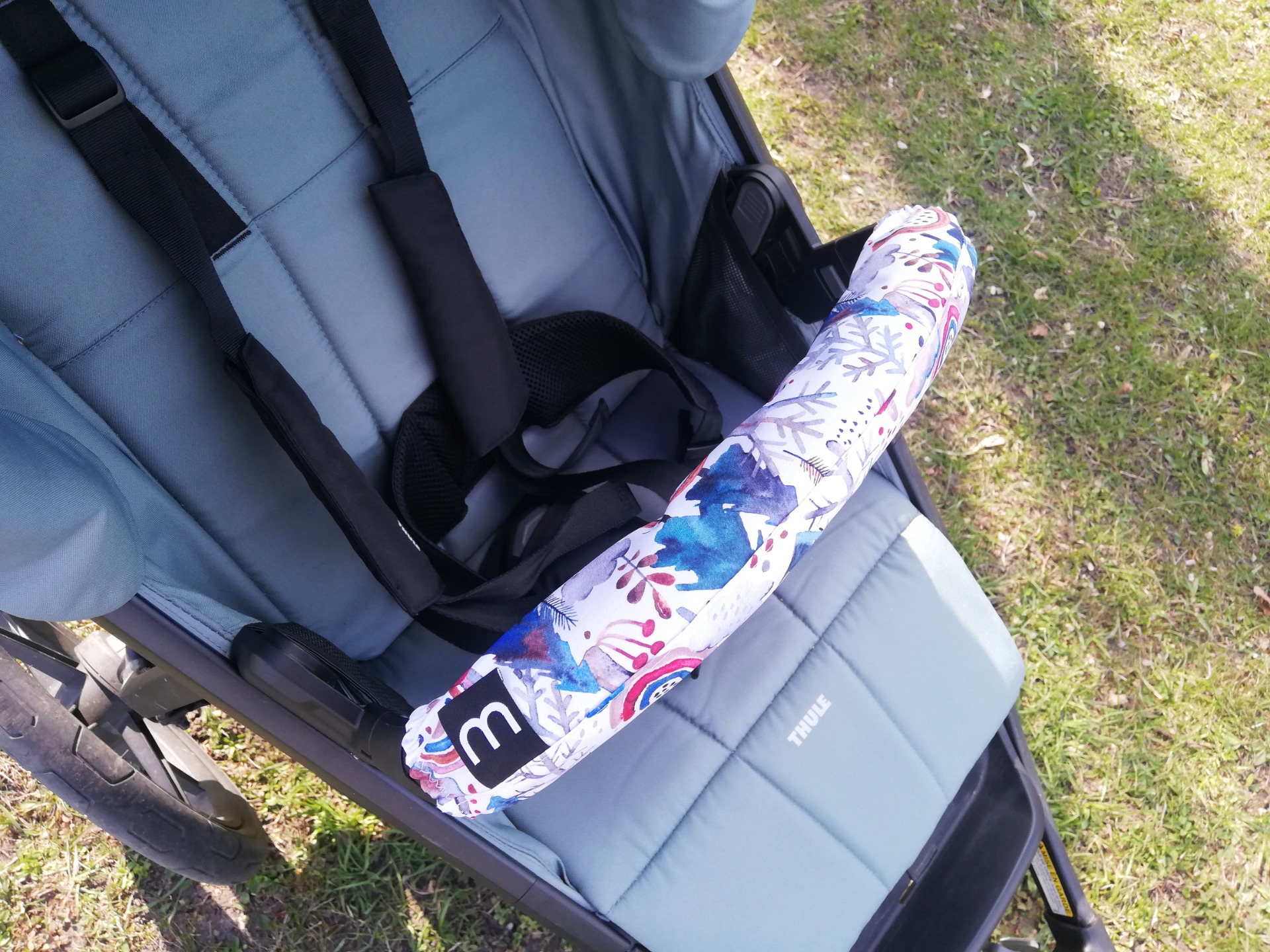 Chránič na dětské madlo je vyrobený z kvalitního sotshellu. Snadné připnutí k madlu pomocí zipu, který lze rozepnout po celé své délce.