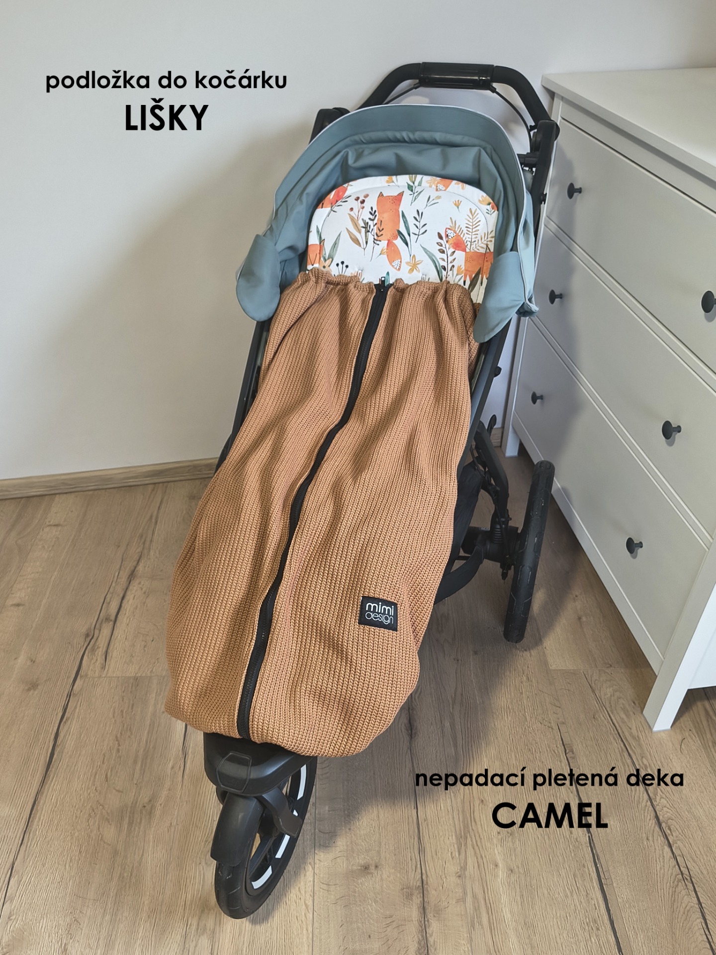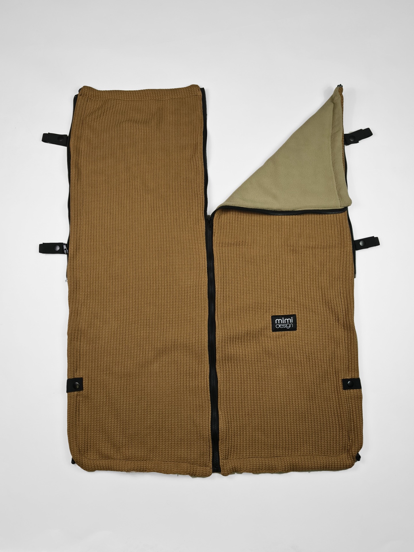 Deka je opatřeba na každém boku zipem. Můžete ji tak připnout přímo k podložce do kočárku a mít jistotu, že vám deka nikdy nespadne. Také díky tomu nebude na miminko foukat a bude tak vždy v teple.