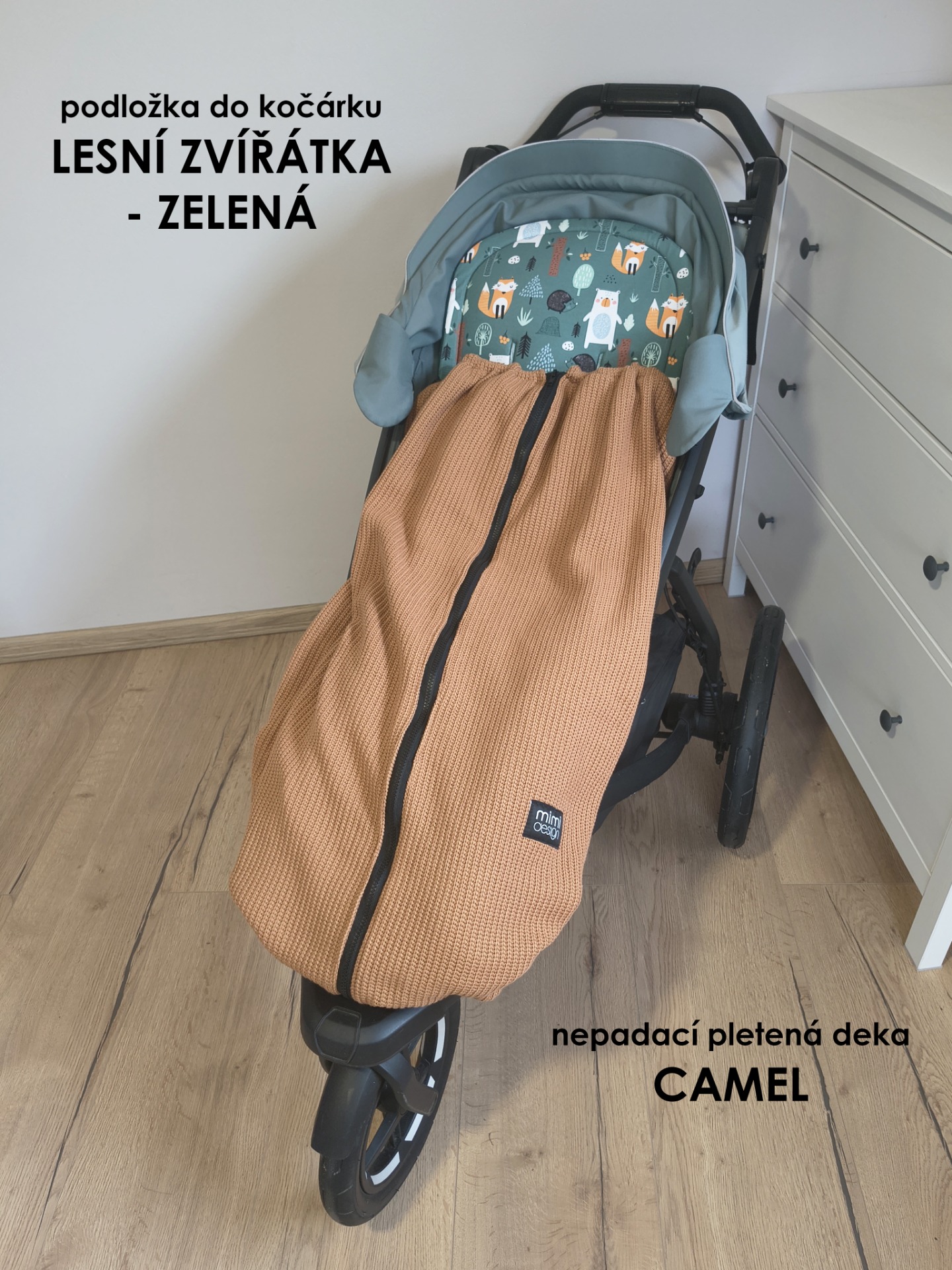 Deka má také v horní části všité gumičky s brzdičkou. Jejich utažením tak deku nahoře zmenšíte a děťátko tak můžete více zachumlat pokud zrovna fouká, prší nebo je větší zima.