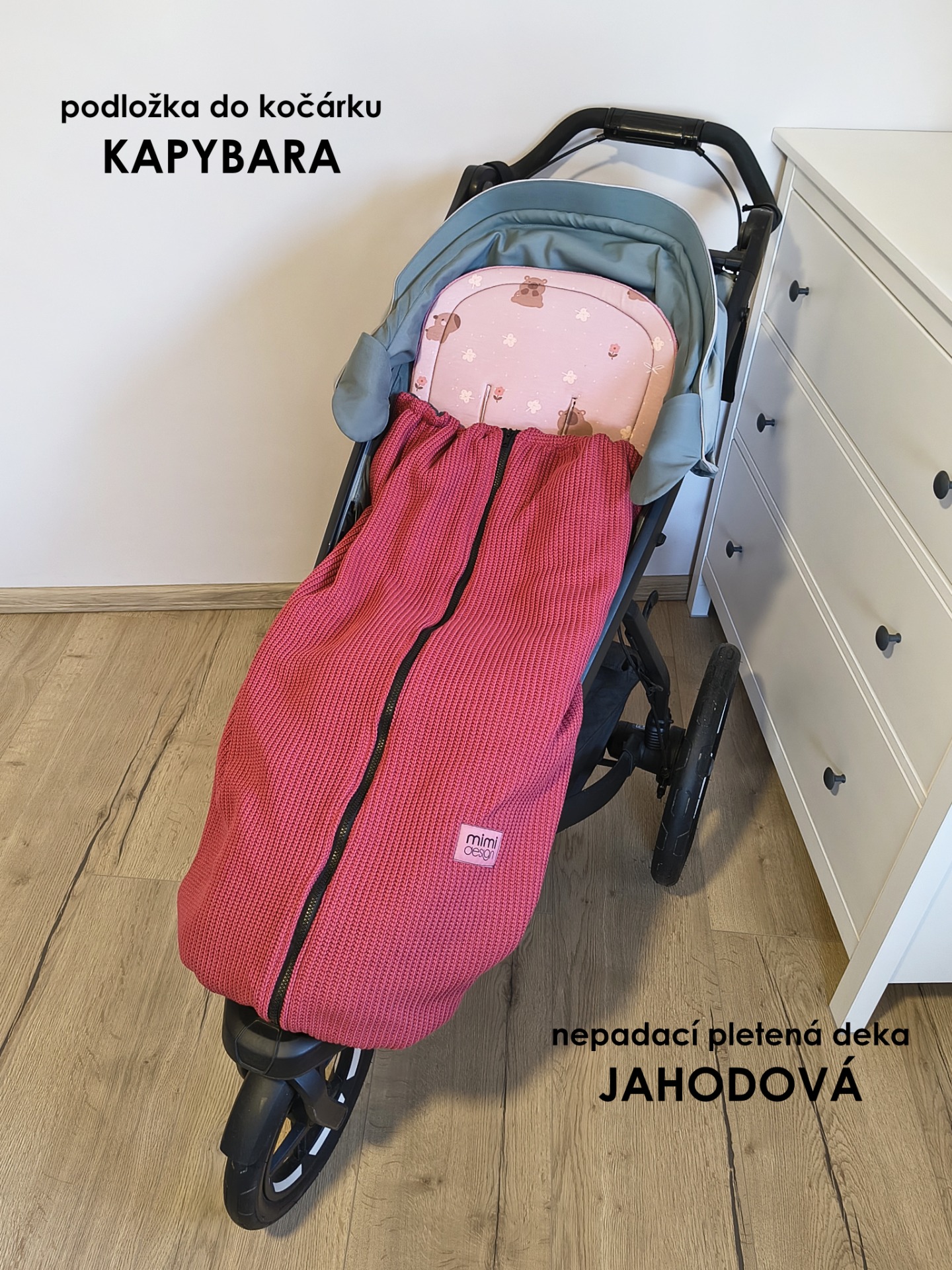 Deka má také v horní části všité gumičky s brzdičkou. Jejich utažením tak deku nahoře zmenšíte a děťátko tak můžete více zachumlat pokud zrovna fouká, prší nebo je větší zima.