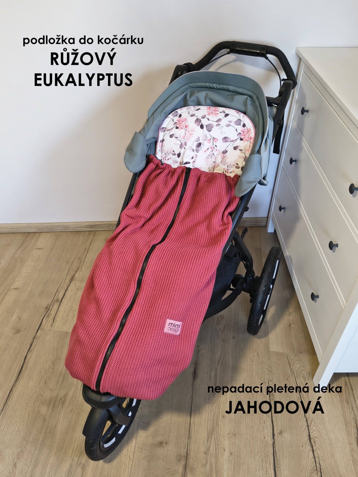 V horní části deky jsou na každé straně také všité dvě gumičky, které můžete snadno připnout ke konstrukci kočárku pomocí druku. Deku tak lze použít i bez podložky se zipy na bocích.