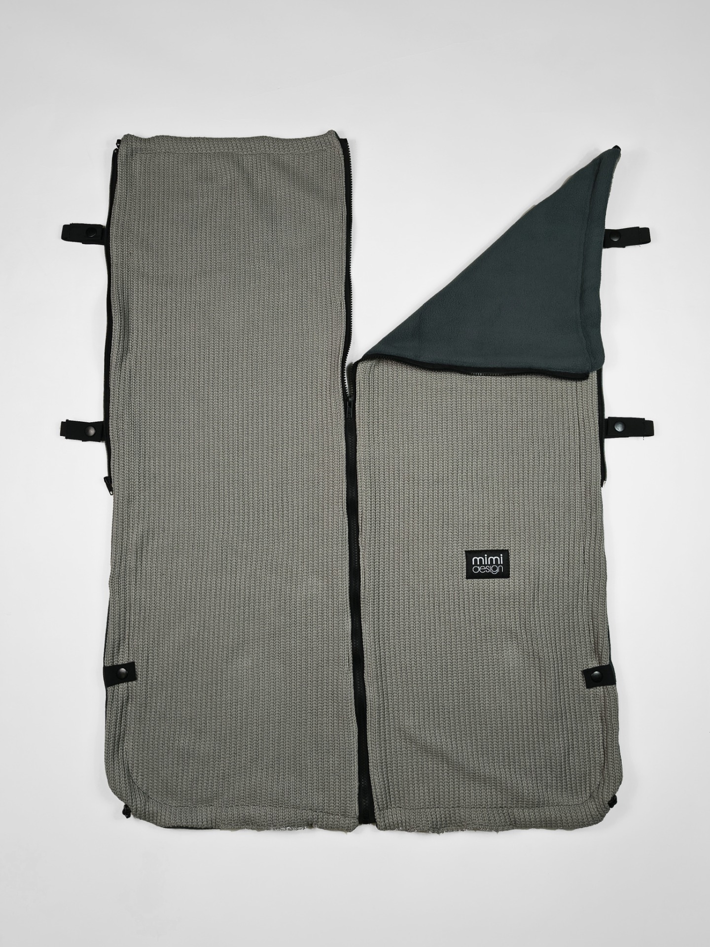 Deka je opatřeba na každém boku zipem. Můžete ji tak připnout přímo k podložce do kočárku a mít jistotu, že vám deka nikdy nespadne. Také díky tomu nebude na miminko foukat a bude tak vždy v teple.