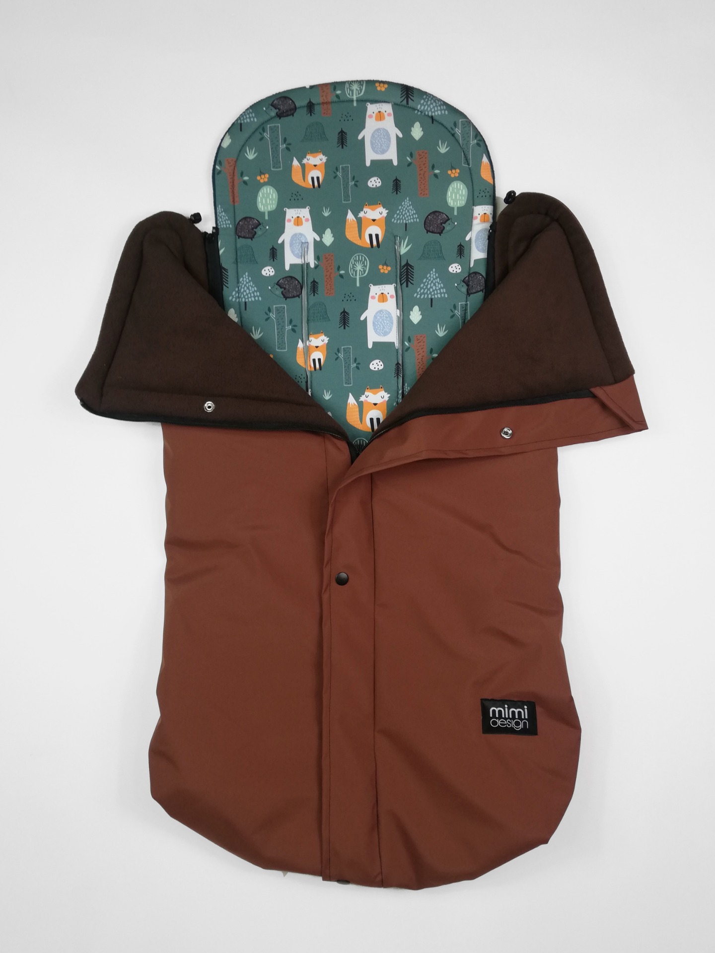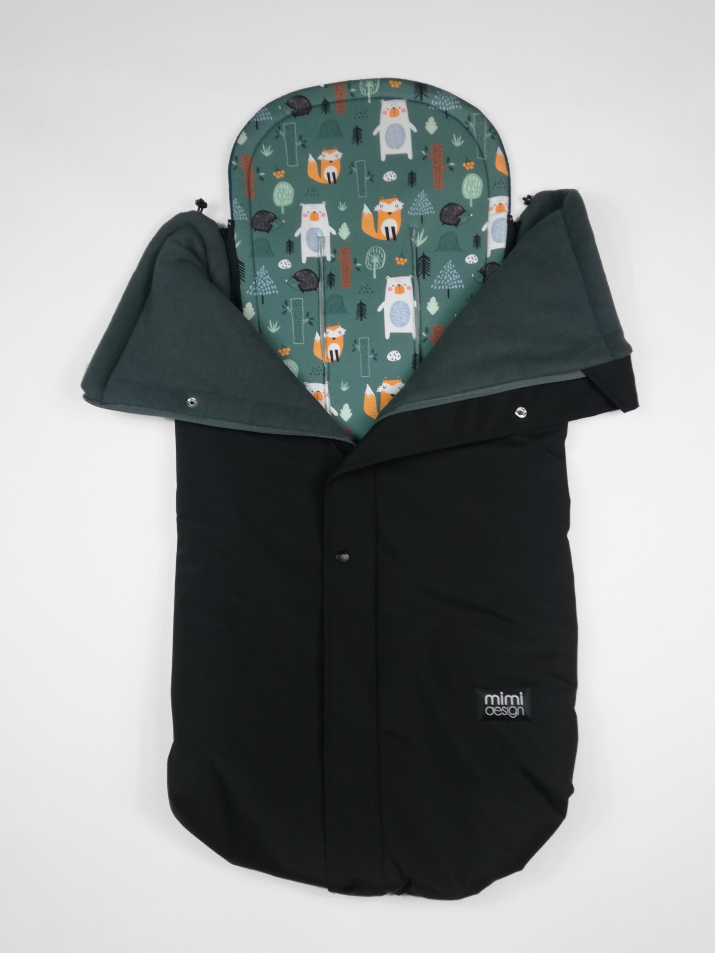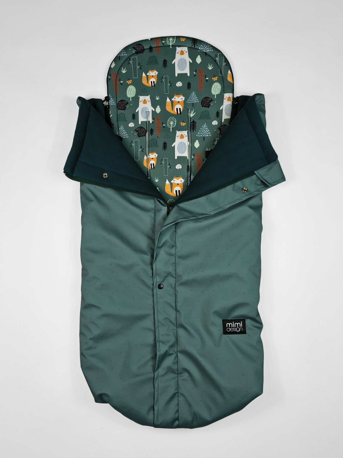 Podložka do kočárku se zipem - Lesní zvířátka - zelená