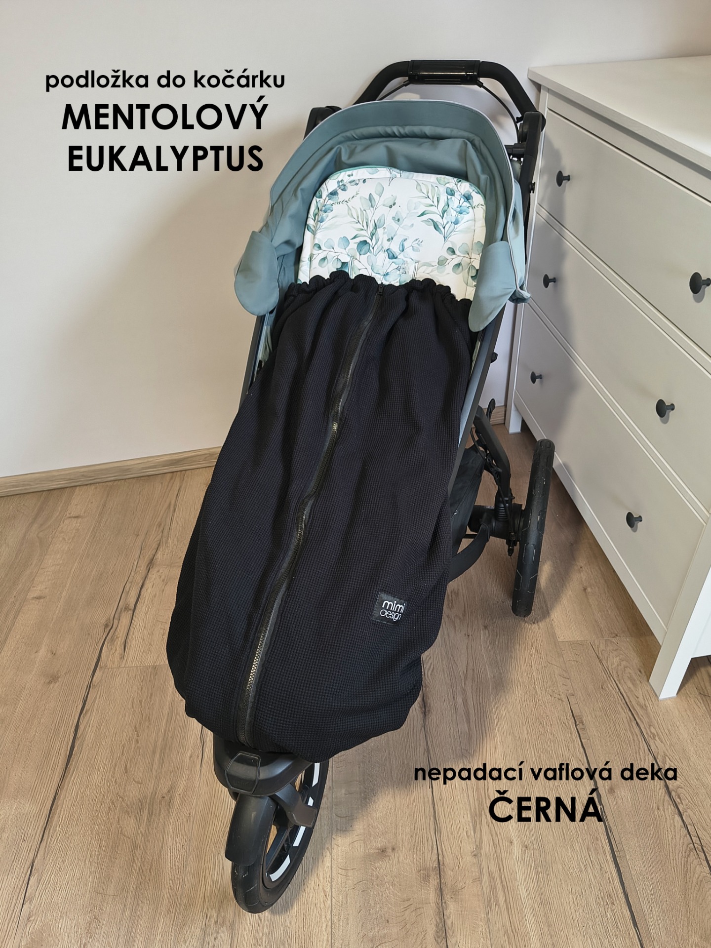 Podložka má v horní části našité dva tkalouny. Můžete je snadno přivázat k ramením popruhům na zádech kočárku. Podložka tak zůstane vždy na svém místě a nebude nikam sjíždět.