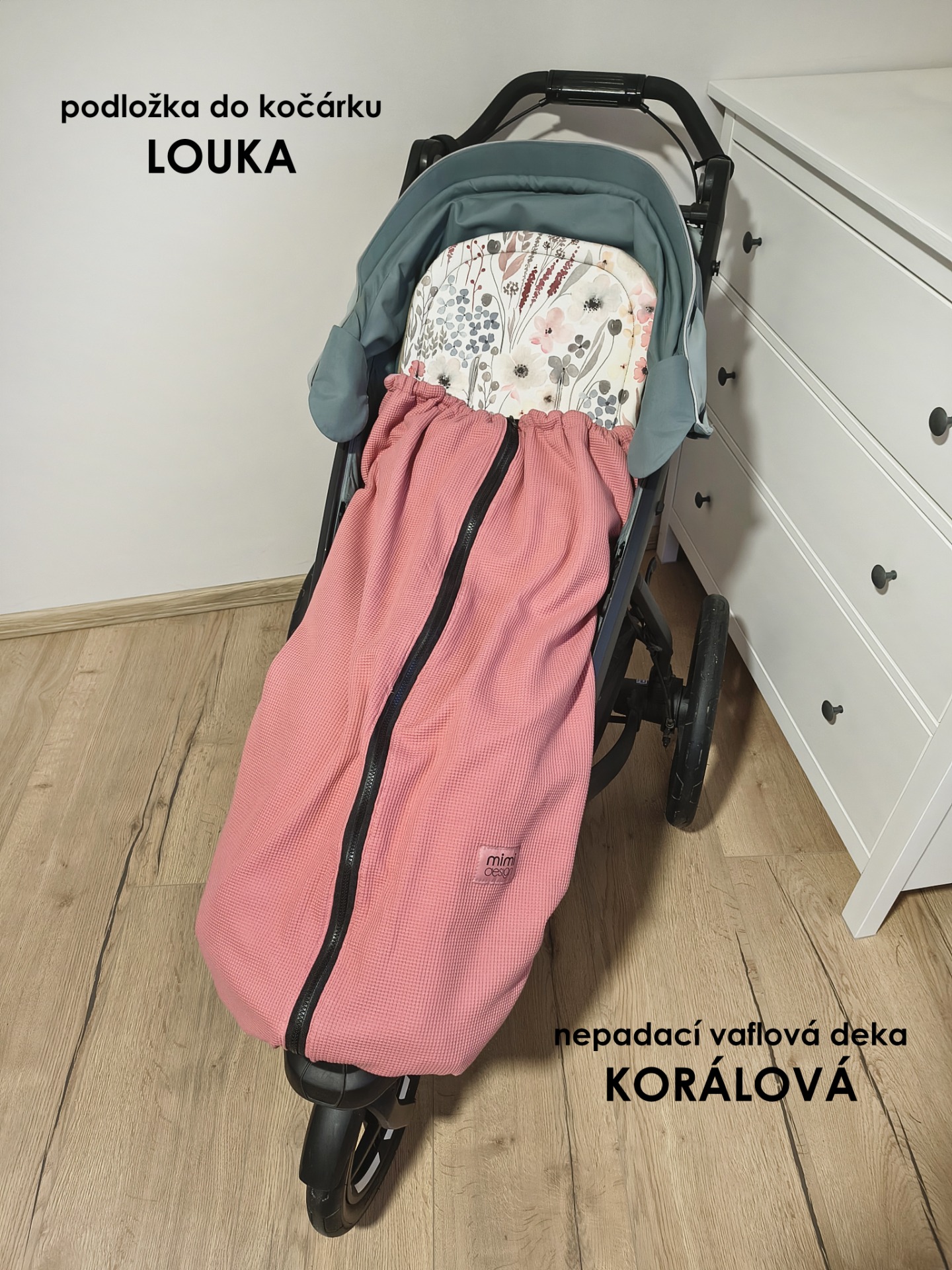 Podložka do kočárku se zipem XL - Louka
