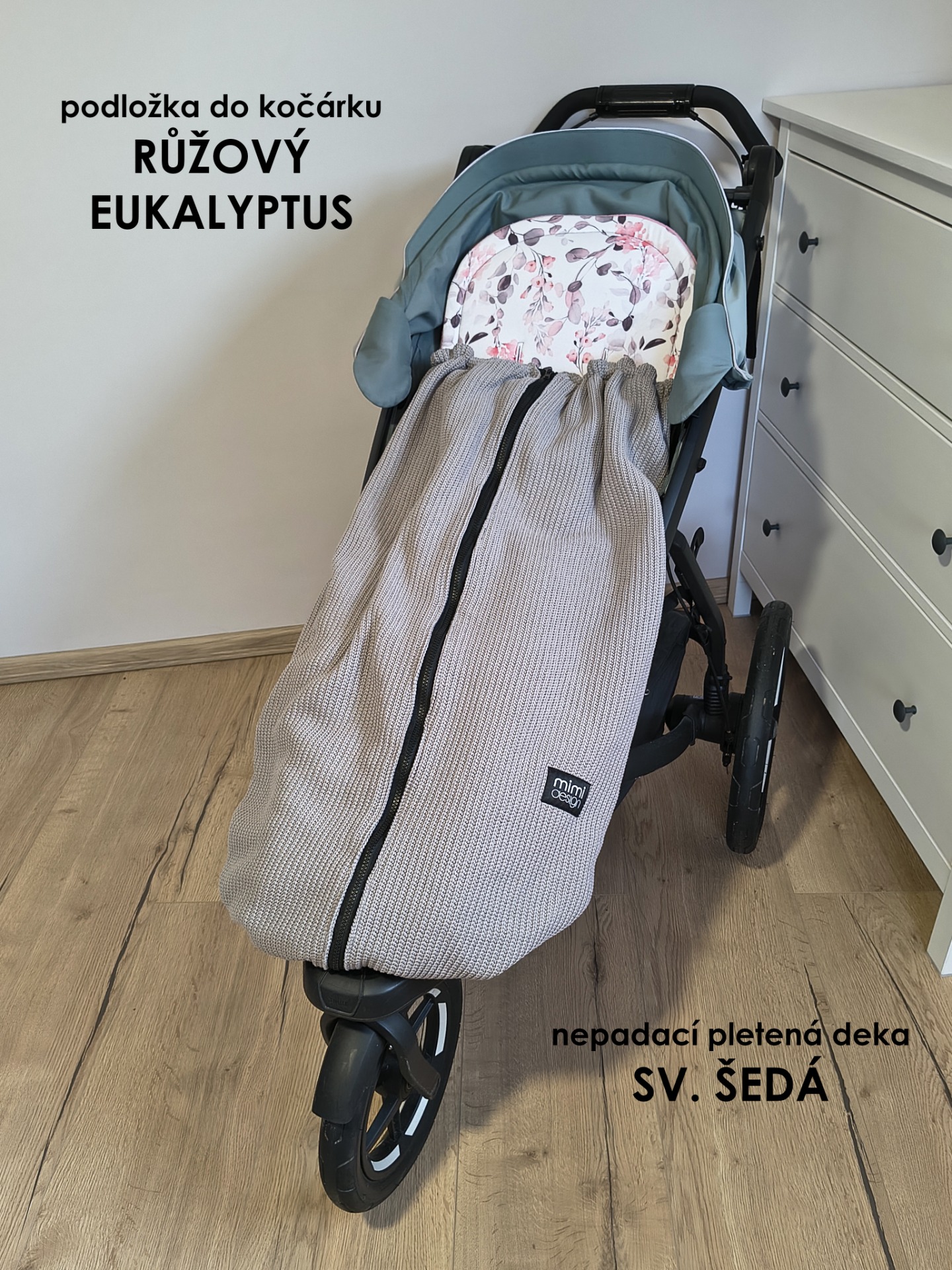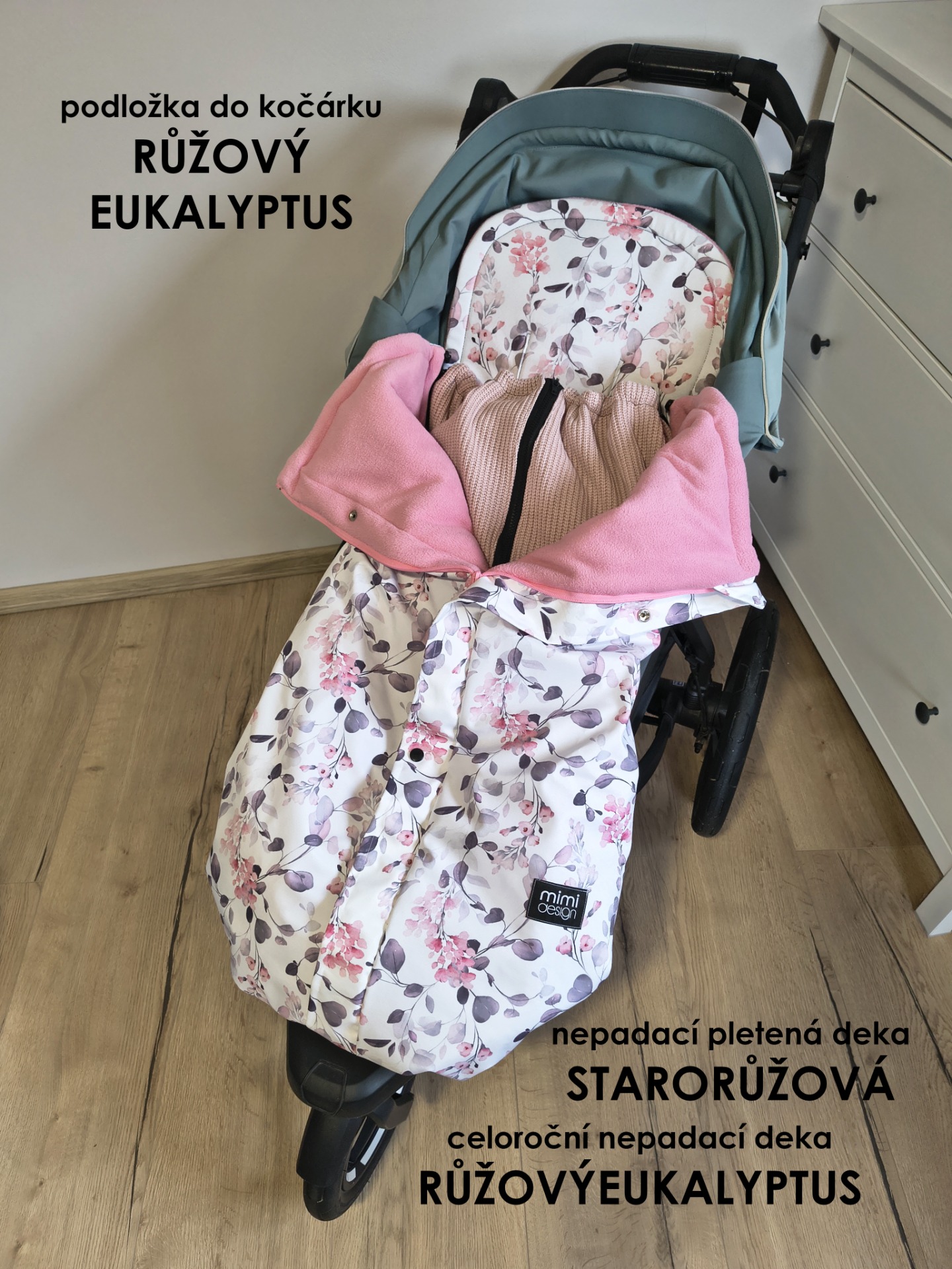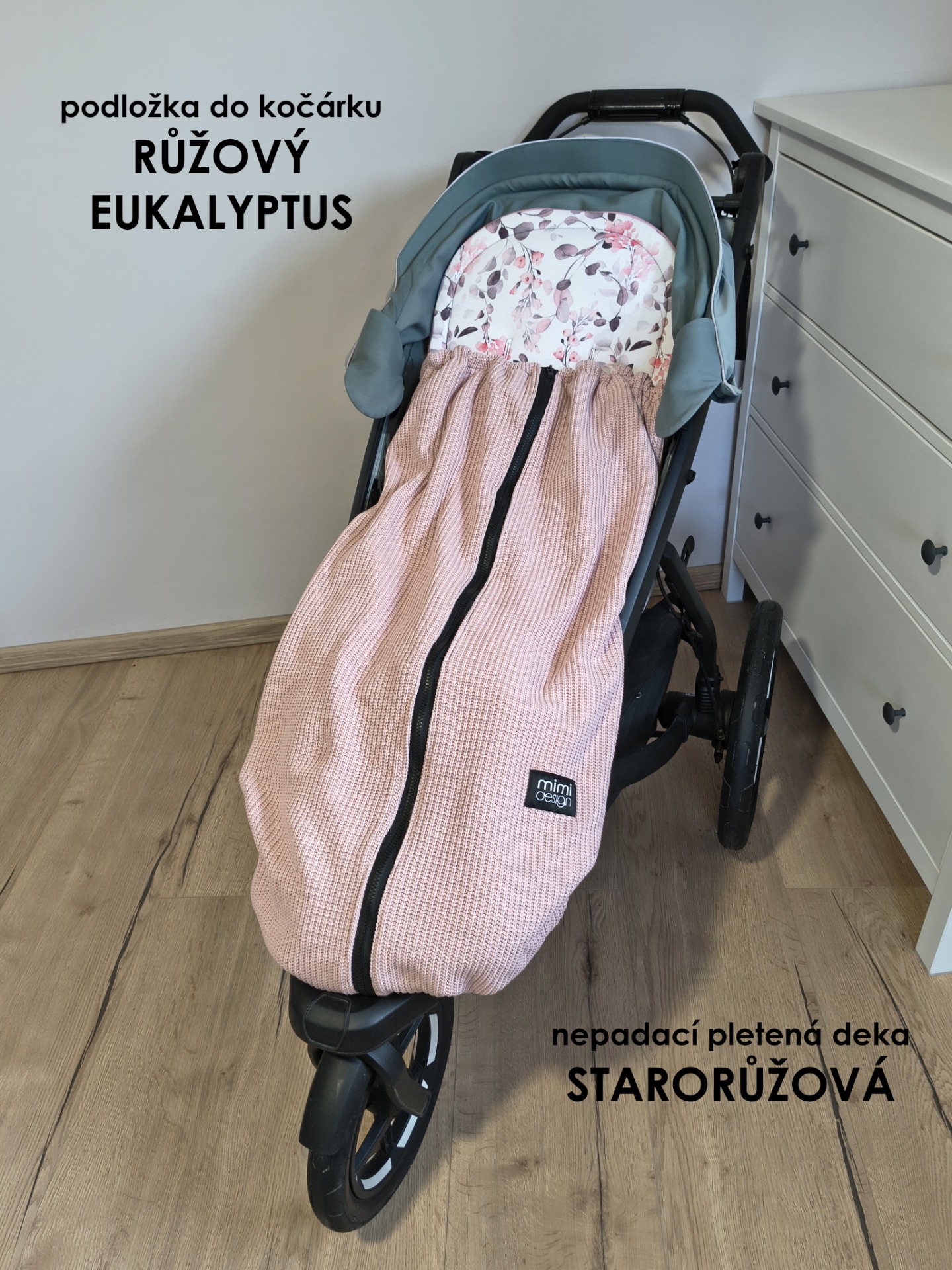 Podložka do kočárku se zipem XL - Růžový eukalyptus