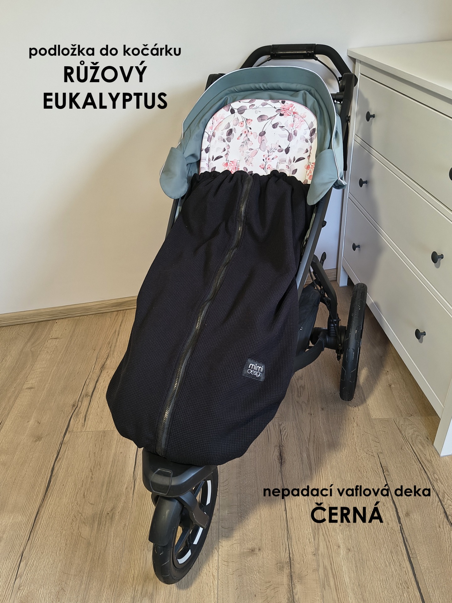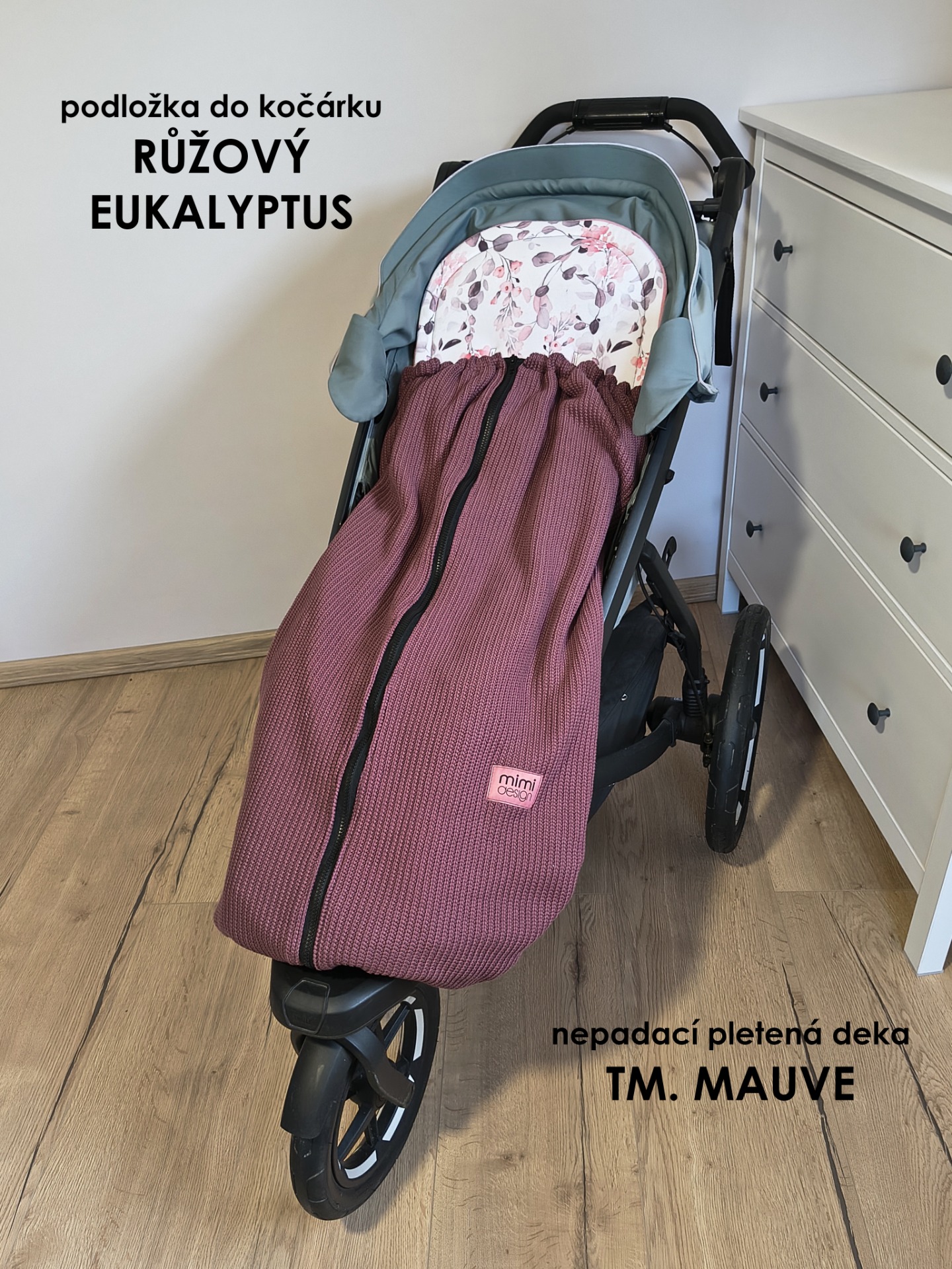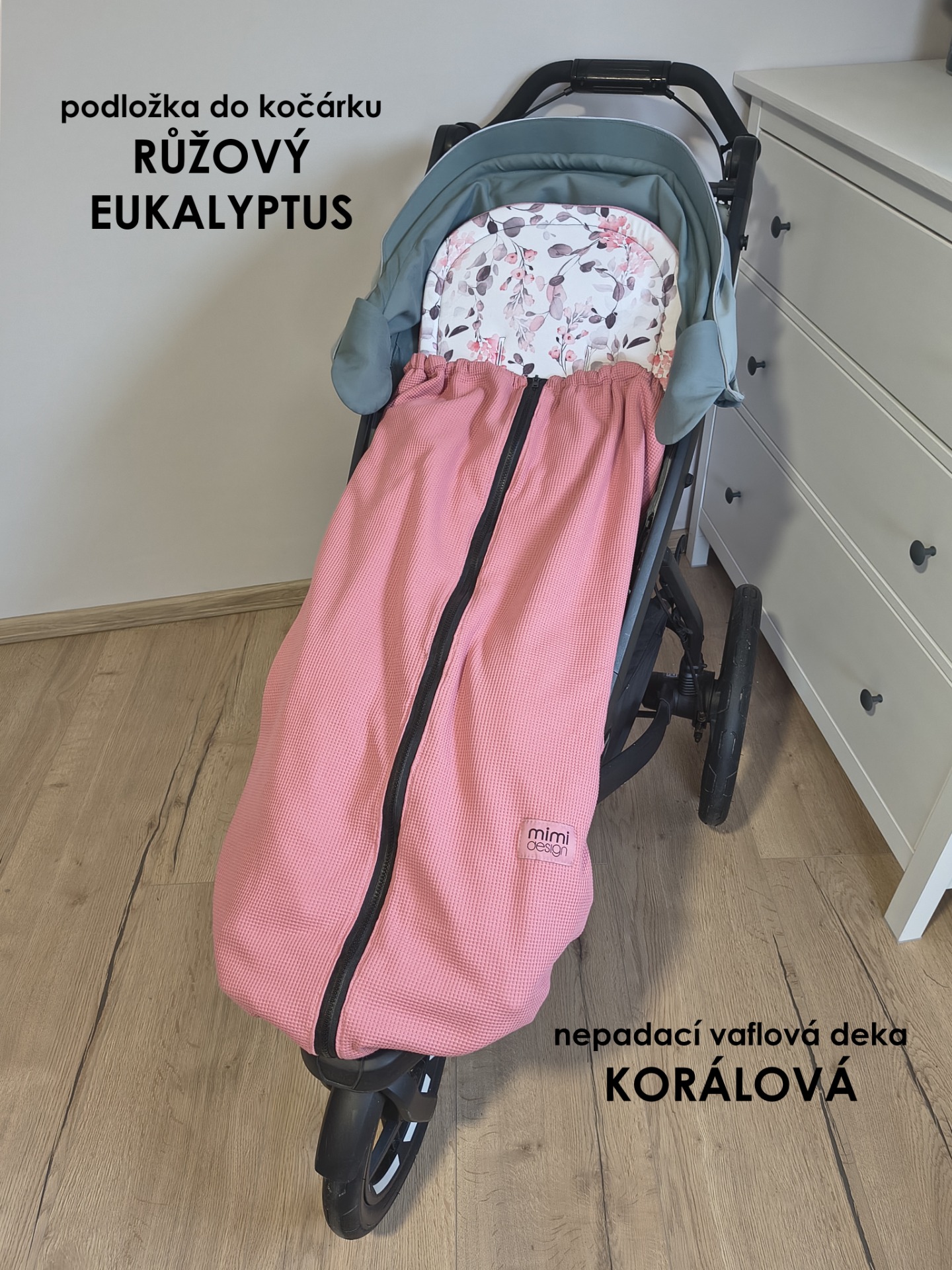 Podložka do kočárku se zipem XL - Růžový eukalyptus