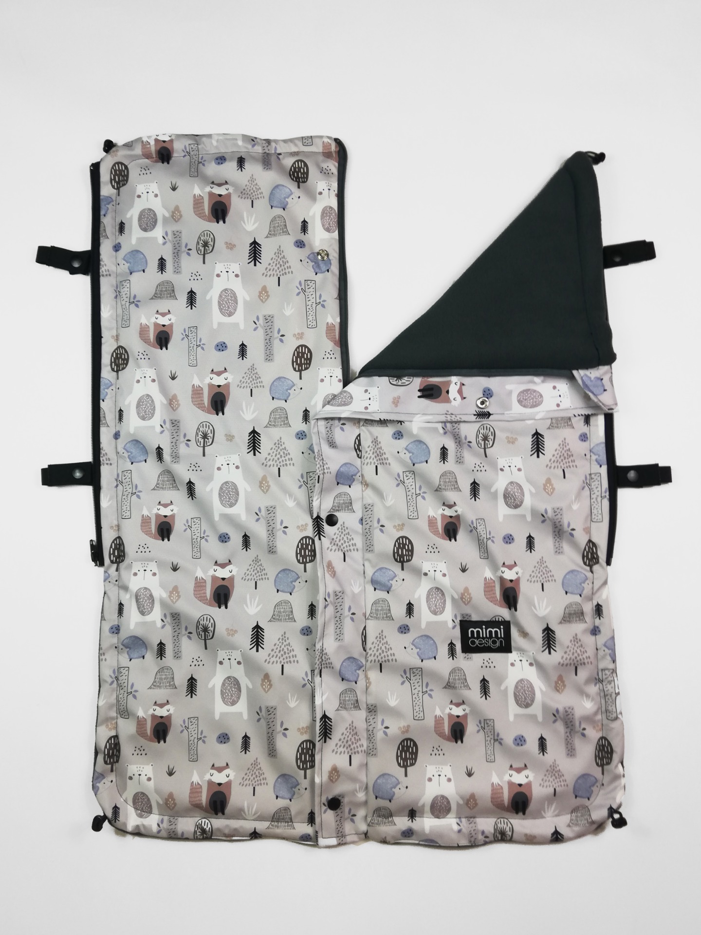 Deka je opatřena na každém boku zipem. Můžete ji tak připnout přímo k podložce do kočárku a mít jistotu, že vám deka nikdy nespadne. Také díky tomu nebude na miminko foukat a bude tak vždy v teple.