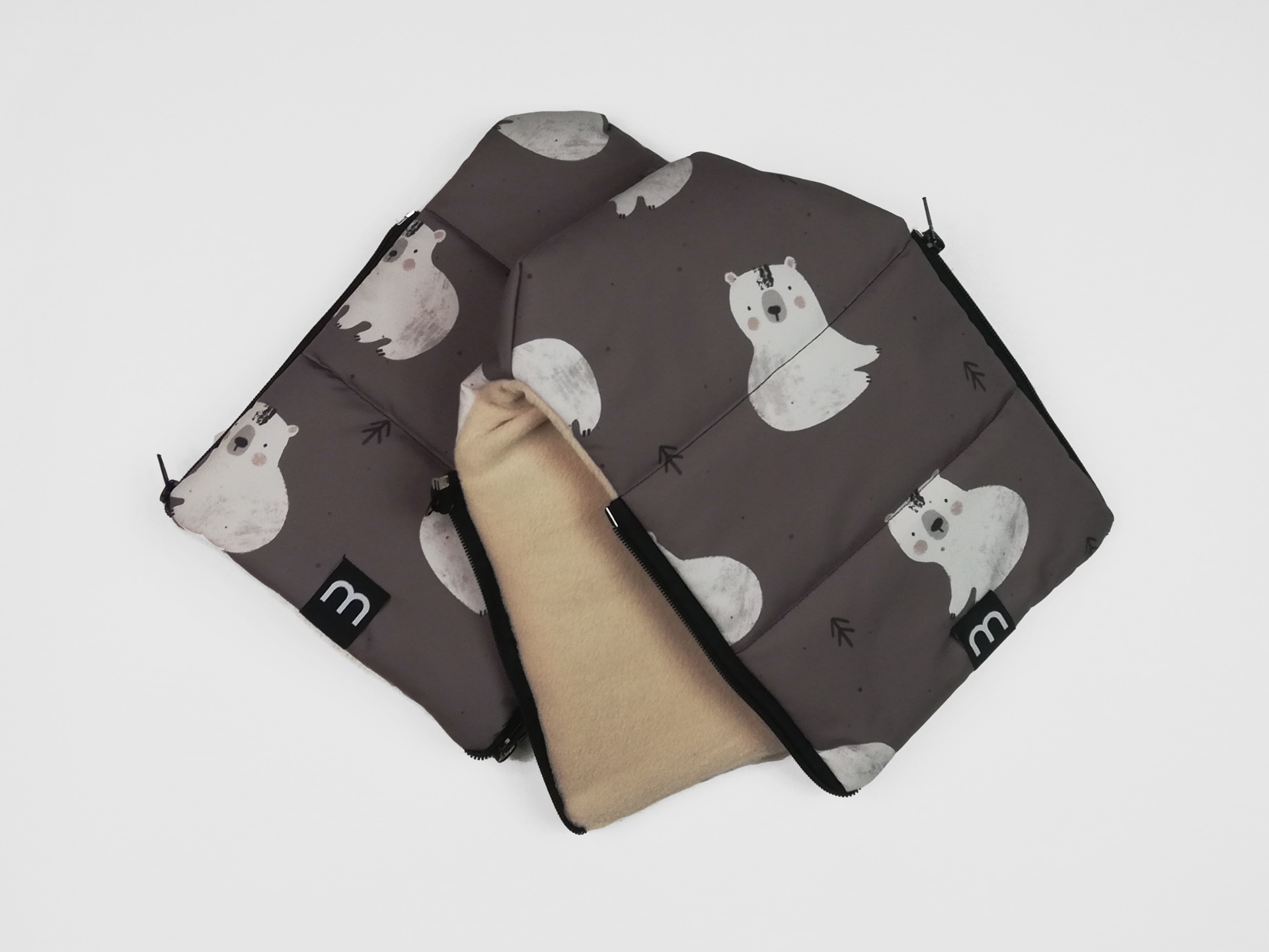 Vnější strana z nepromokavého softshellu ( TPU 8000/2000 ), vnitřní strana z fleece - hebkého a zároveň odolného plyše, vyteplený je rukávník silnou vrstvou dutého vlákna (300 g/m2). Určený pro všechny tipy kočárků.